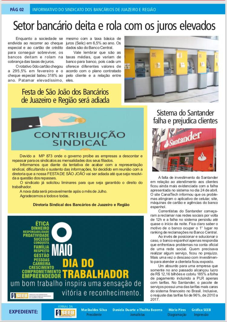 Atenção Bancários: Já saiu a SEGUNDA edição do mês de ABRIL do Jornal O Brado da SEEB de Juazeiro e